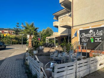 El bar del pueblo. Tanto de jóvenes como de viejos como de mediana edad. Era el bar al que ibas a desayunar oa tomar unos tragos el sábado por la noche. Era el bar en el que Alessa hacía todo: te tomaba el pedido, te traía la bebida, cocinaba, te traía la comida y te cobraba. Felice, el dueño, lo ayudaba de a ratos. Si vas alguna vez, te recomiendo la hamburguesa Polifemo con panceta, huevo y tomate. ¡Una bomba! Tanto que no pude terminarla las veces que la pedí. Eso sí, recordá que las papas son aparte y siempre te las traen primero, no saben que se viene todo junto…
