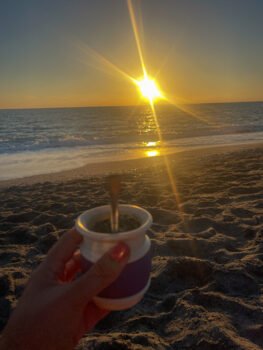 Dejé lo mejor para el final. Las playas de Falerna son amplias aunque un poco sucias, por lo menos fuera de temporada. Pero el mar, su color, su calma y el atardecer eran perfectos. Los mejores atardeceres los ví acá. Tardes eternas de mates y galletitas, charlas, juegos, música y alguna vez con una mojada de pies. Almuerzos también hubo, obviamente con mate. El mate nos distinguía del resto de la gente, aunque no era lo único. Éramos los únicos de jogging y zapatillas en la playa, los demás eran de pantalón, pollera, zapatos, bucaneras, mucho maquillaje y mucha campera. Realmente si llegabas sabías perfectamente quién era argentino y quién italiano. No sabemos todavía por qué se visten así para ir a la playa pero no los vamos a juzgar ni a discriminar. Solo nos sentimos un poco desubicados a veces, ya veces sentimos que los desubicados eran ellos. Pero todos convivamos en perfecta armonía.