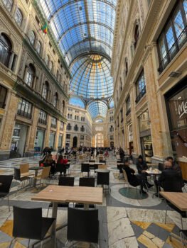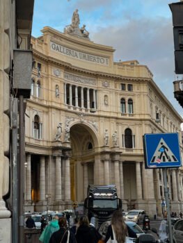 • Vía Toledo y Galería Humberto I: como ya dijimos, es la zona comercial de la ciudad. Aquí hay desde locales de primeras marcas hasta africanos haciendo sus carteras imitaciones de las mejores marcas. Recorrerla es ver un poco la vida de la ciudad y querer hacer un poco de compras. Al principio de la misma, se encuentra la galería que es un monumento en sí mismo. Fue construido entre 1887 y 1890 para el saneamiento de la ciudad, es que hasta ese momento en esa zona había edificios con callejones cortos que en donde se producían delitos de todo tipo. Además, la higiene del peor lugarna cada vez más y presentó muchas epidemias de cólera. Es un edificio con cuatro brazos y una cúpula hecha en vidrio y hierro.Por lo que intervino el gobierno, se presentaron diversas propuestas y ganó la del ingeniero Emmanuele Rocco. Al entrar da una sensación de inmensidad y lujo que no es posible explicarlo, muchos dicen que se asemeja a la que hay en Milán. En su interior hay bares, locales de ropa y recuerdo.