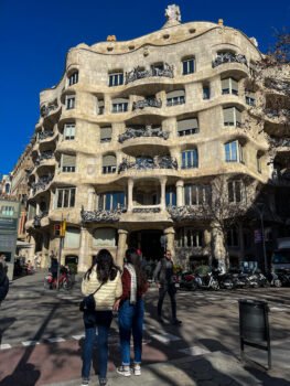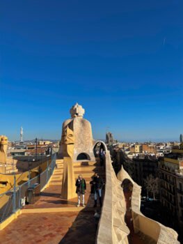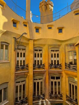 Aquí también llegué caminando desde donde estaba alojada y compré la entrada en el lugar, 25 euros. Pero también puedes contratar alguna excursión con el recorrido por las obras de Gaudí, acá podés verlas. El recorrido por el edificio no lleva más de una hora, dependiendo de cuánto te quedes en cada lugar, y recomiendo hacerla, además de la Sagrada Familia, ya que tendrás una visión más amplia de la obra de Gaudí, viendo un edificio de viviendas y uno religioso, con temáticas totalmente diferentes pero siempre con el espíritu y los conocimientos de él. Esta obra en particular le trajo muchos problemas, tanto legales como financieros, y fue objeto de numerosas burlas y sátiras de la época, en el lenguaje actual diríamos que hubo varios memes al respecto. Así que te dejo la inquietud si visitas Barcelona, para que no creas que aquí solo hay playas y fiestas.