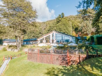 Para complementar el lugar, un deck de madera que da al lago termina de enamorarte. Las tardes de verano sentadas aquí tienen otro sabor. Los caranchos o las bandurrias deambulan por el lugar, el lago aparece con ese color verde esmeralda que parece Caribe, los coihues alrededor te dan ese aire fresco de la Patagonia. Todo está puesto para que relajes vista, cuerpo y alma. Y para que disfrutes de tus vacaciones en un lugar de ensueño.