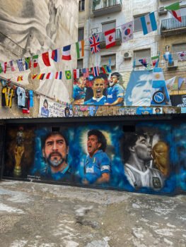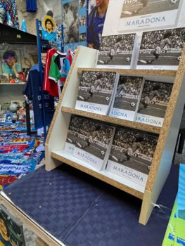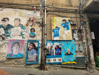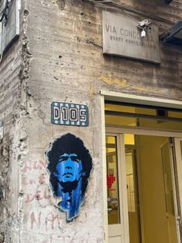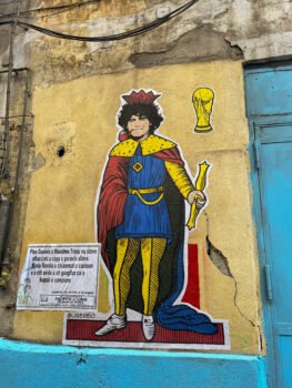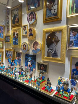 Visitar el Quartieri Spagnoli hace que uno se haga un poco fans de Maradona, si es que no lo es, o que por lo menos quiero saber todo de él aquí. No soy fanática de Maradona, sí bostera, pero tengo varias razones que me hacen no poder idolatrarlo del todo. Admiro su manera de jugar y ver el futbol, y admiro su pasión por el futbol y por Argentina. Pero su vida personal ha sido un poco controvertida y eso ha generado en mí una especie de rechazo hacia su persona. Aunque cuando visitas un sitio así te replanteas qué es un ídolo.