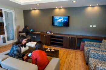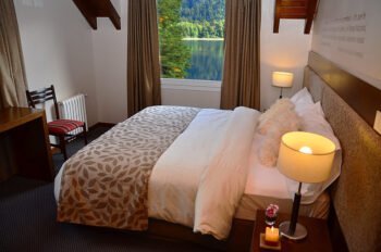 Además, el hotel posee en Restaurante Gourmet, con platos típicos de la Patagonia Argentina, como son la carne o el pescado, además de habitaciones con vistas al lago, al río y algunas suites.