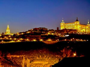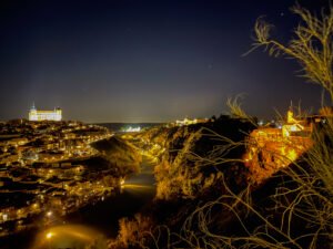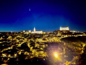 Mi visita a Toledo tenía planeada una vista nocturna de la ciudad. Había visto varias imágenes y escuchado a mucha gente hablar sobre Toledo Iluminada y no me la quería perder. Así que el día que llegué, ni bien empezó un atardecer, emprendí camino rumbo al Mirador del Valle.